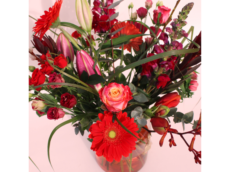 Doe een paar druppeltjes kleurstof in het water van je vaas voor die extra touch. Je vindt de geschikte waterkleurstof bij ons in de winkel, in de afdeling snijbloemen.